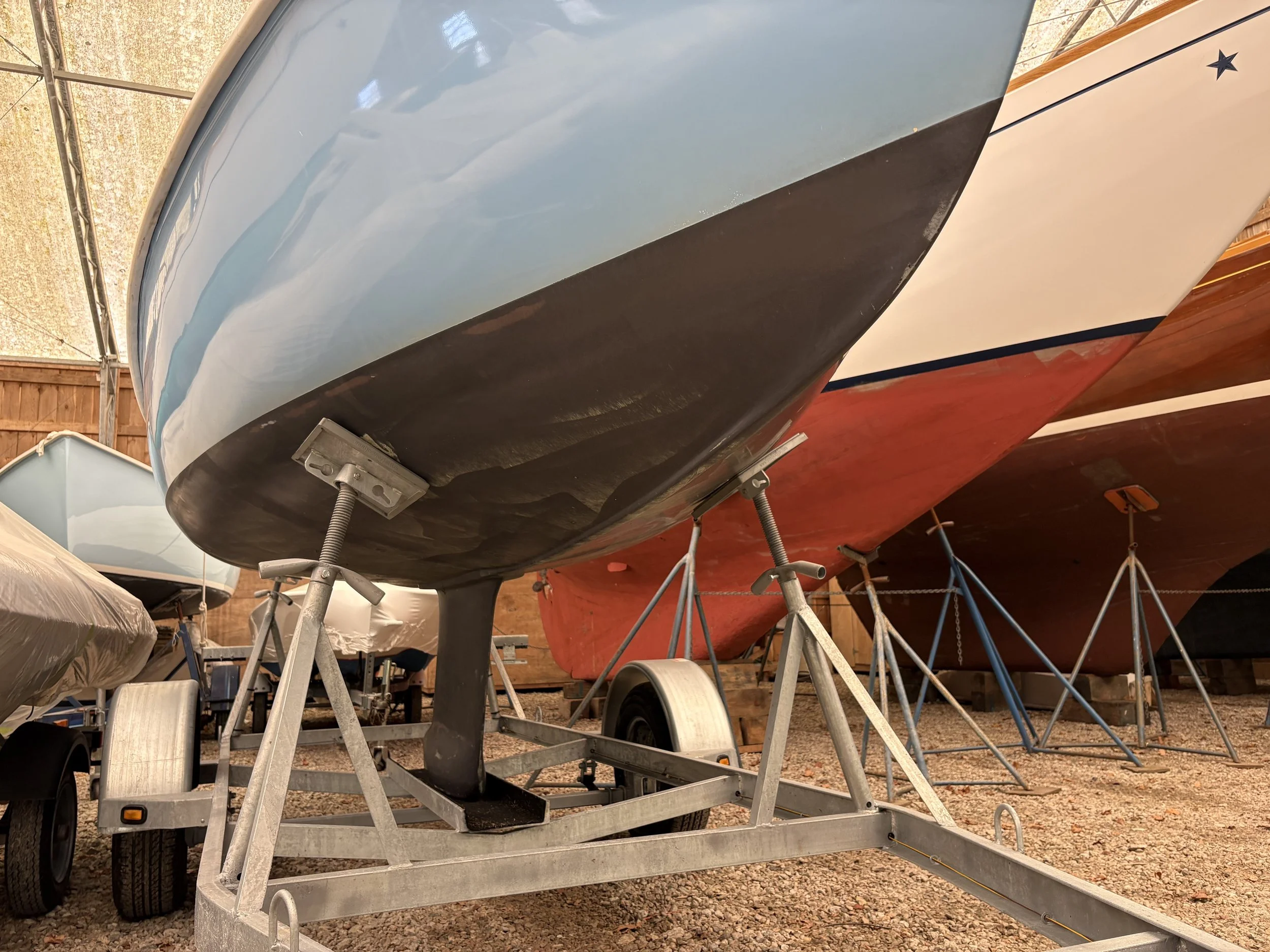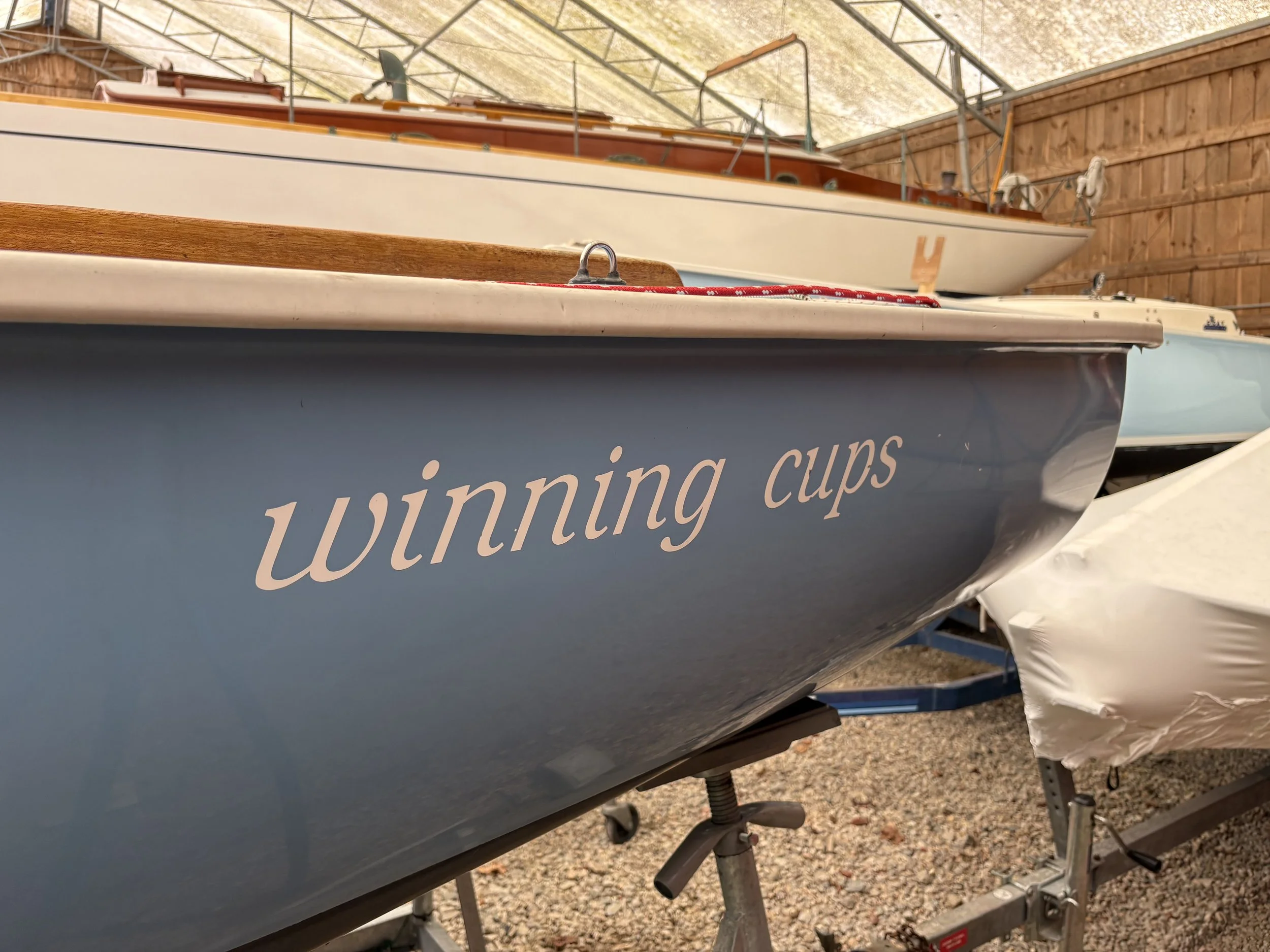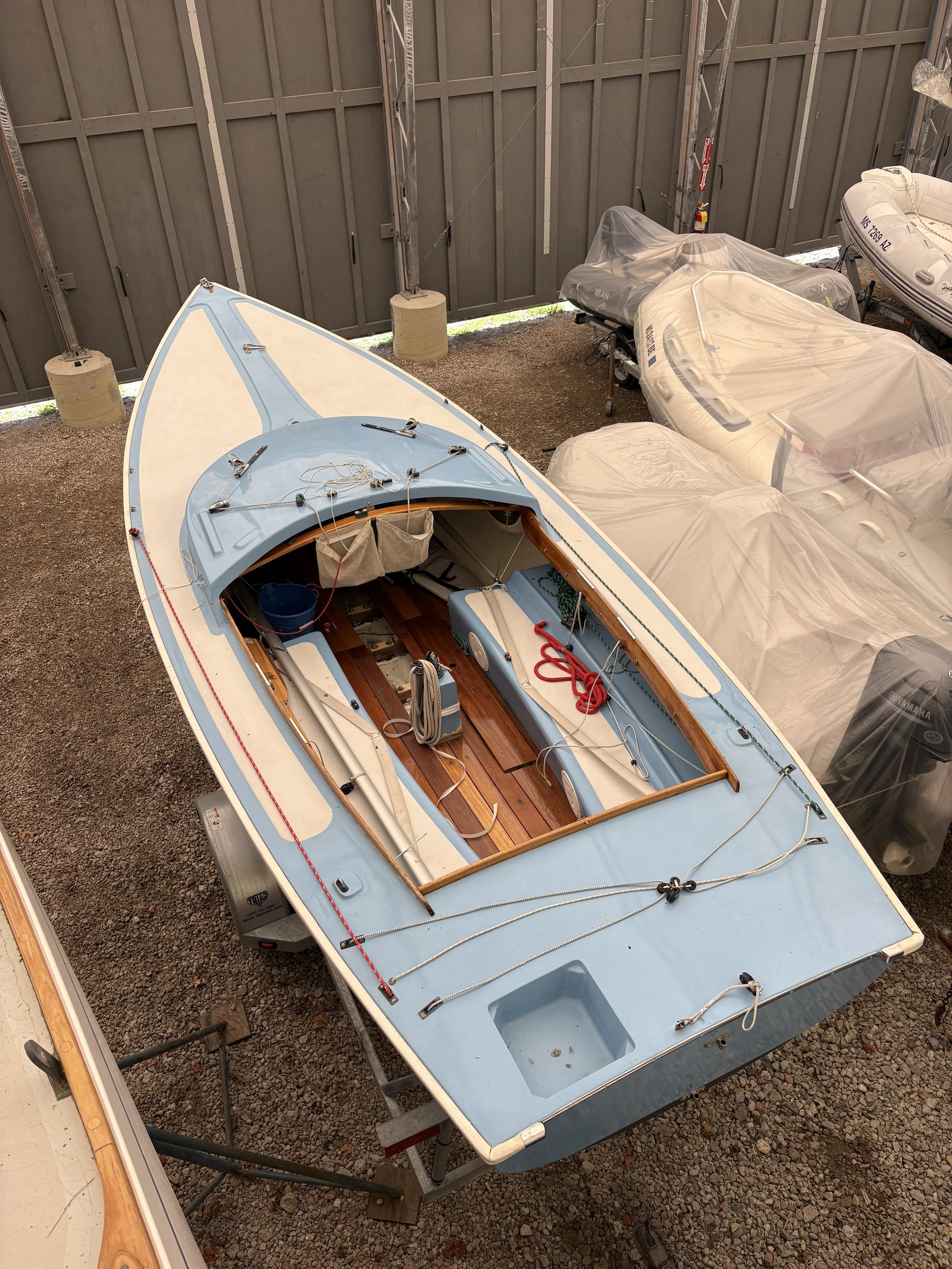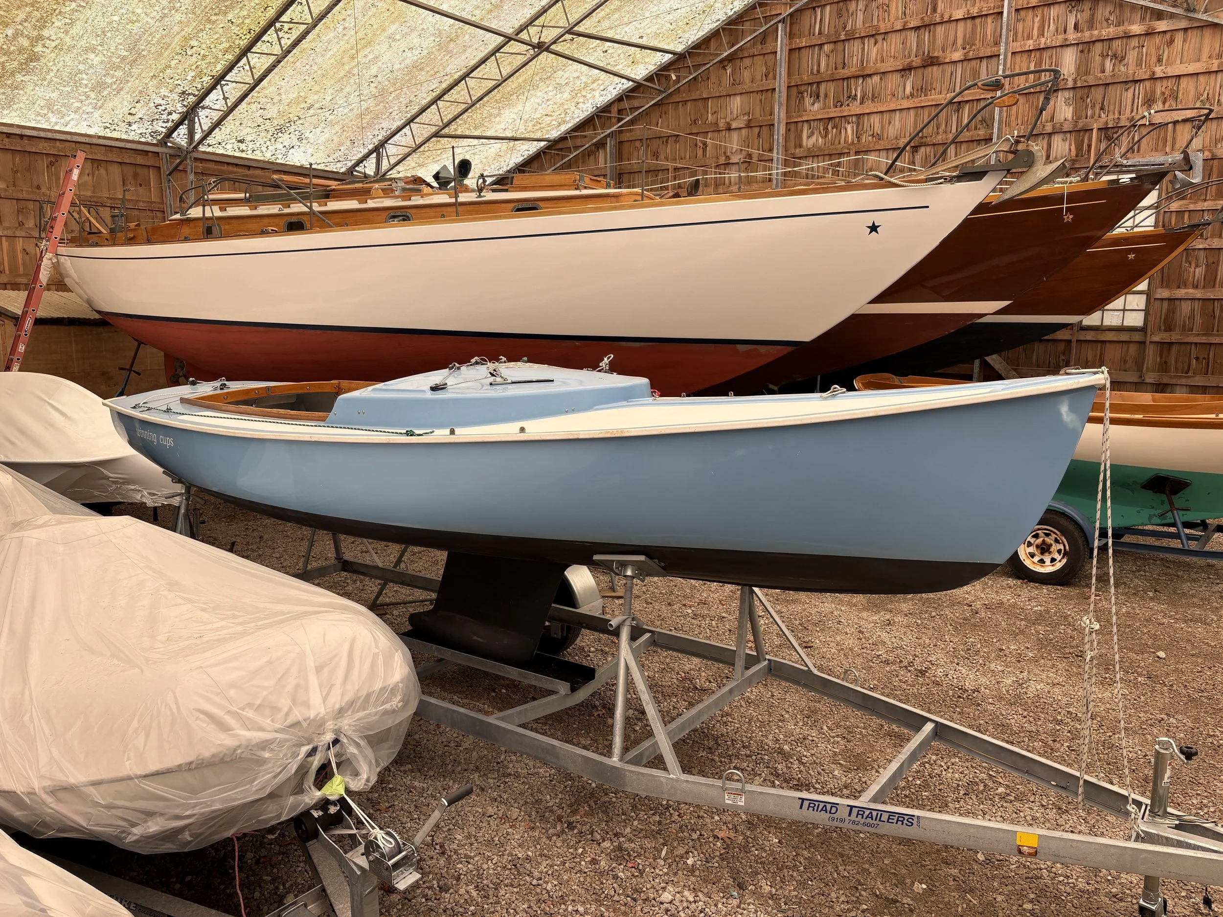 WINNING CUPS is a professionally-maintained Rhodes 19 with a 2025 Triad trailer. Stored inside at Concordia Company each winter, she was restored to a high level. Her decks are dry, she has 2 sets of sails, and can be considered turn-key. She received a major refit from Concordia in 2016, which involved a comprehensive refinishing and upgrades to her underbody.